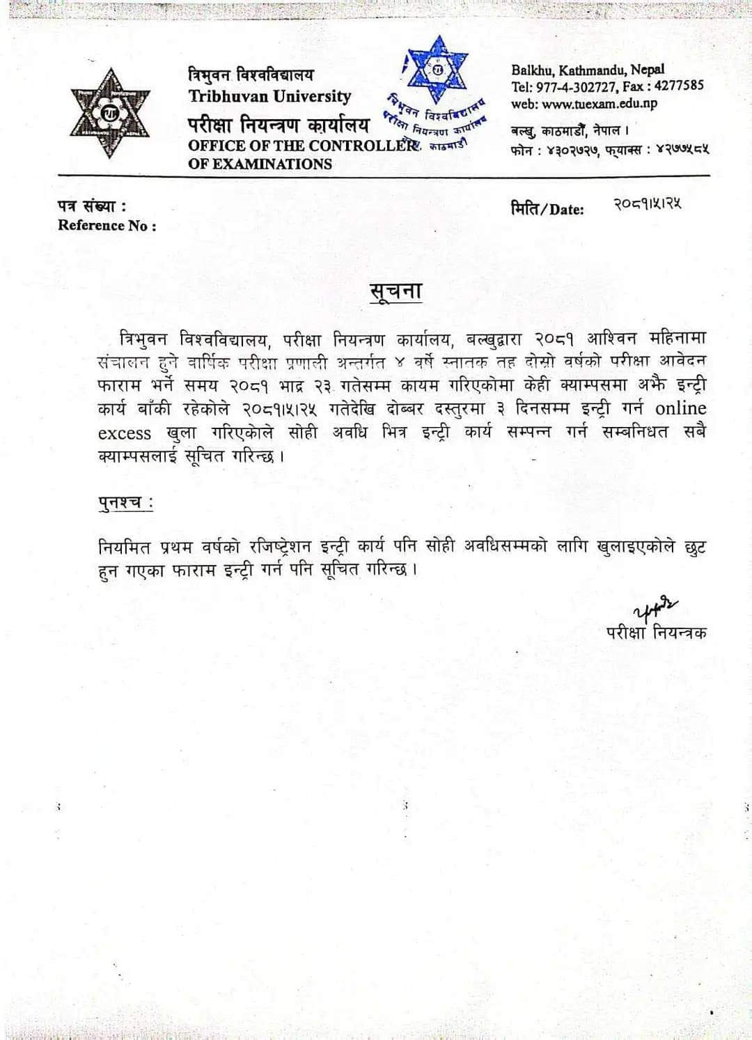रजिस्ट्रेसन फाराम तथा परिक्षा फाराम भर्ने समय थप सम्बन्धि सुचना ।