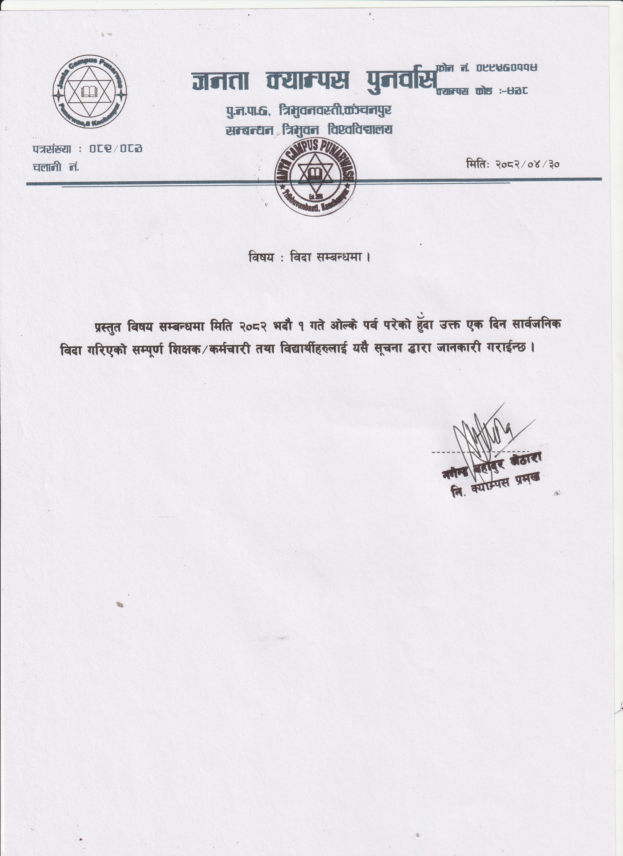 बिदा सम्बन्धी सूचना