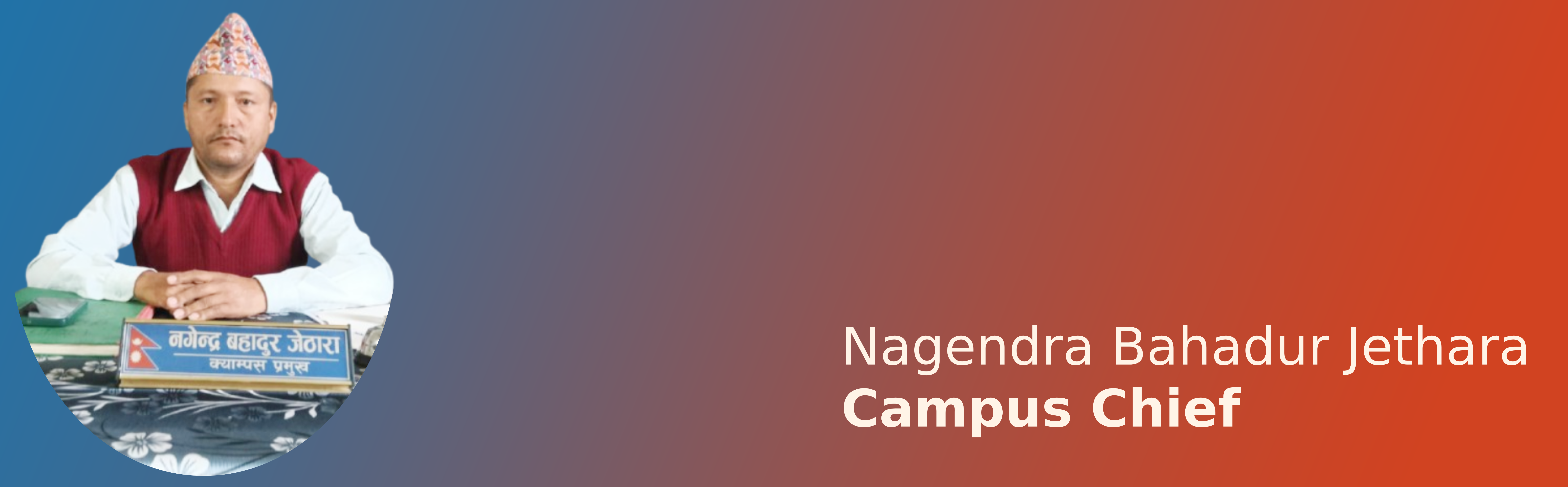 Now, we have our own building and are trying our best to uplift the standard of teaching-learning quality. We are committed to making the campus one of the best campuses of the Sudur Paschim province. The website we are going to design will be helpful to convey our status and state to all well-wishers and stakeholders of the camps. I wish the campus may flourish repeatedly.